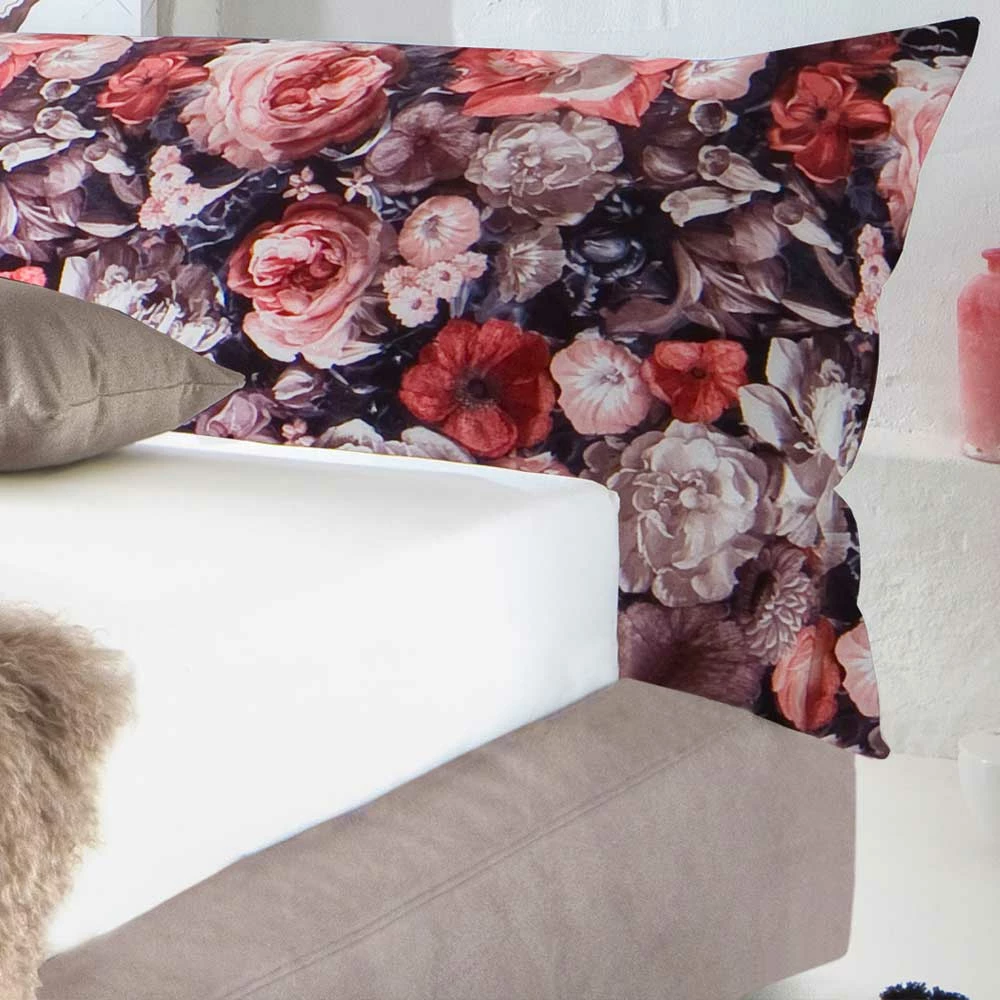 - Gepolstertes, angeschrägtes Kopfteil in Kissen Optik mit dekorativem Rosenmuster-Bezug aus Microfaser (100 % Polyester)