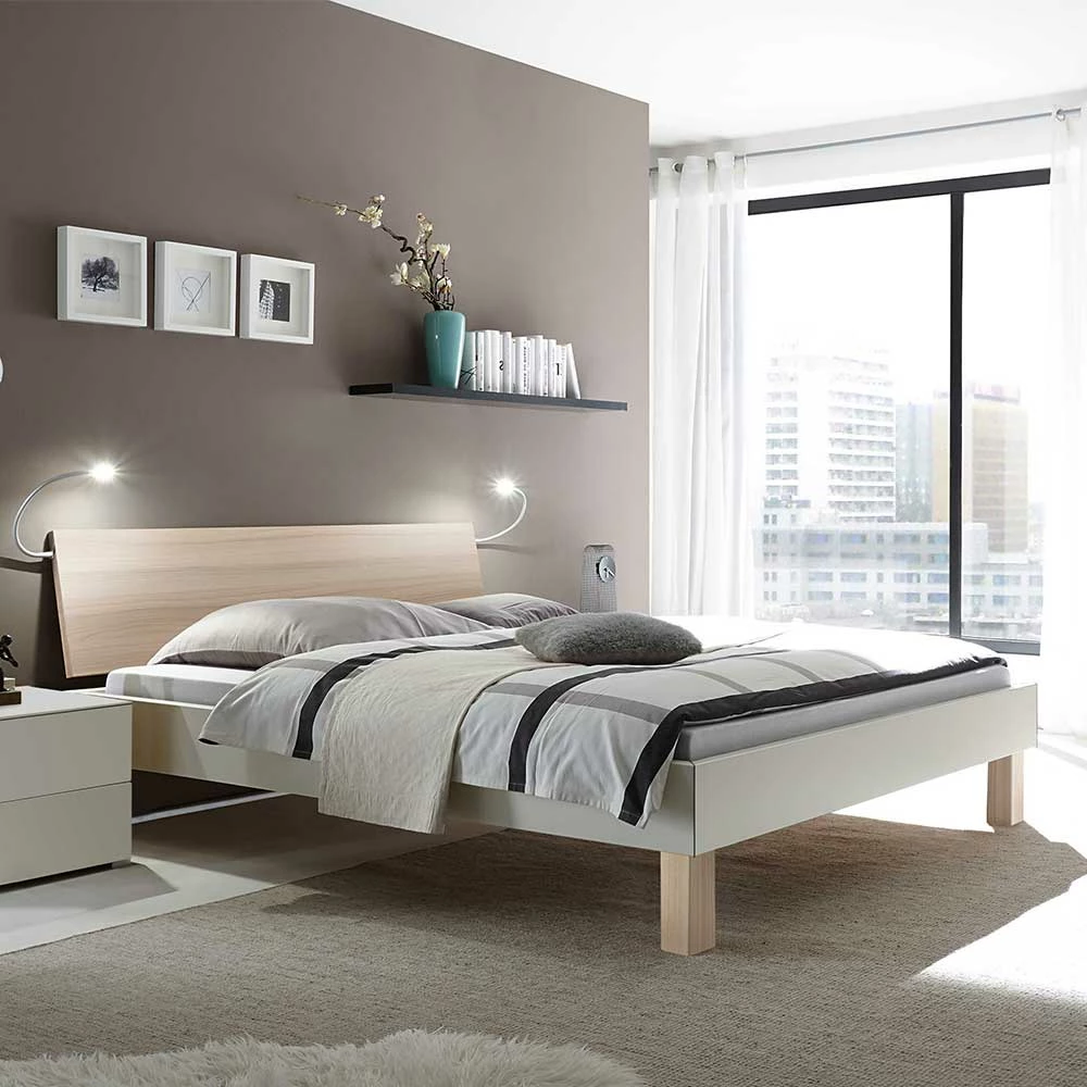 Design-Doppelbett In Hellem Esche Dekor & Weiß – Ezianas
