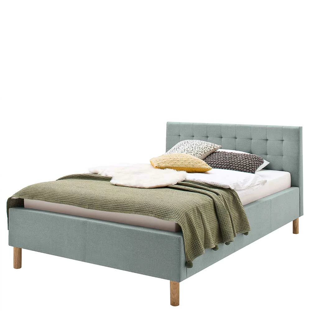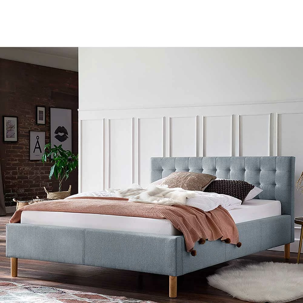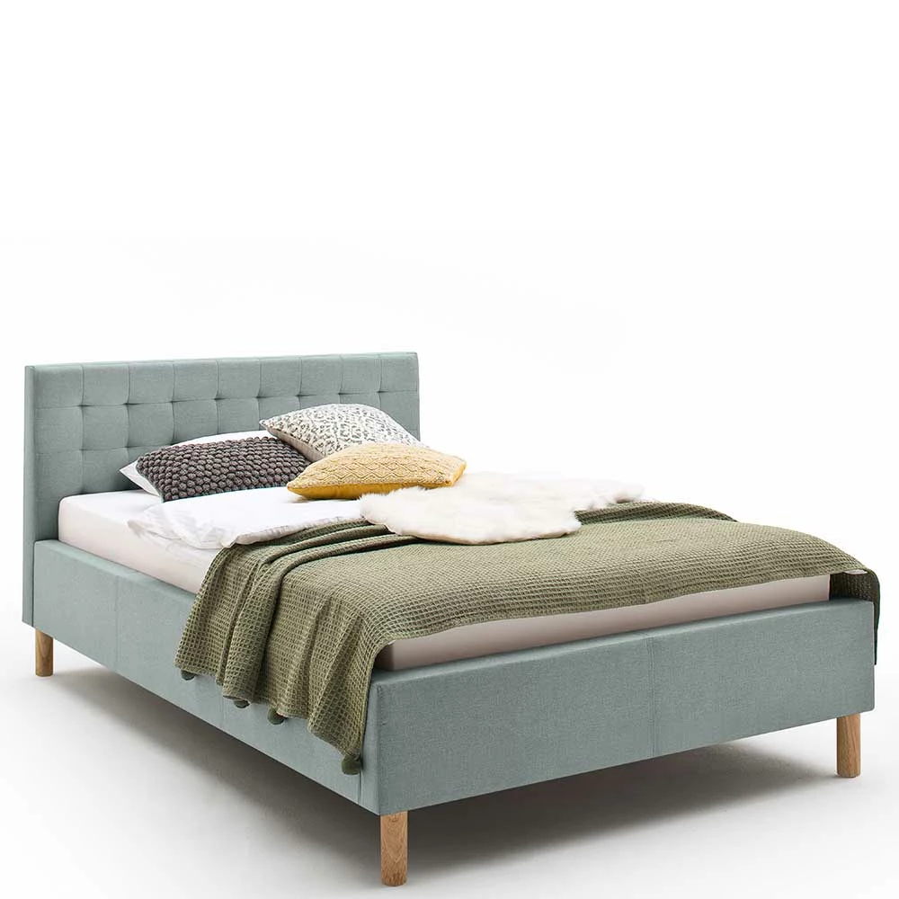 - Klasse Polsterbett in Hellblau und Eichefarben