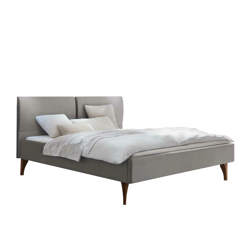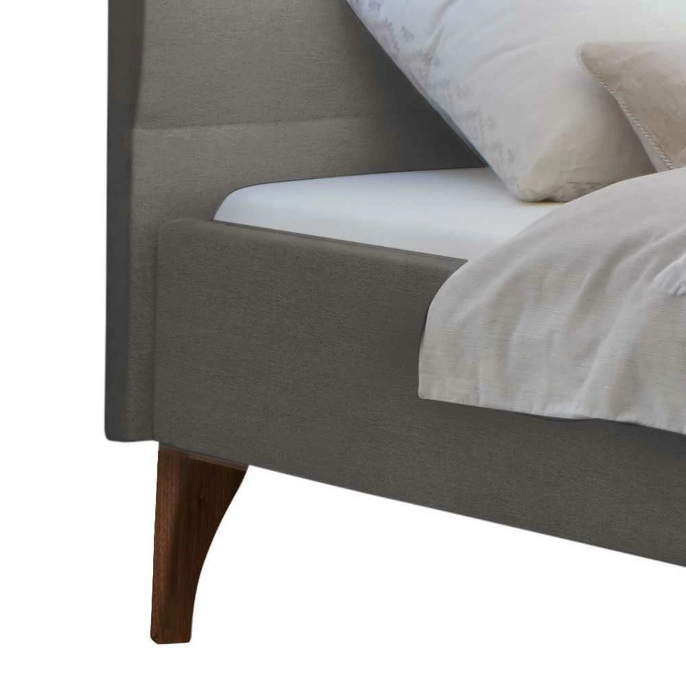 Graues Stoffbett Mit Holzfüßen Nussbaum – Thorau