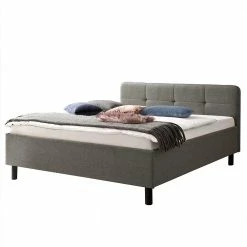 Hellgraues Polsterbett Mit Dunklen Holzbeinen – Yamato
