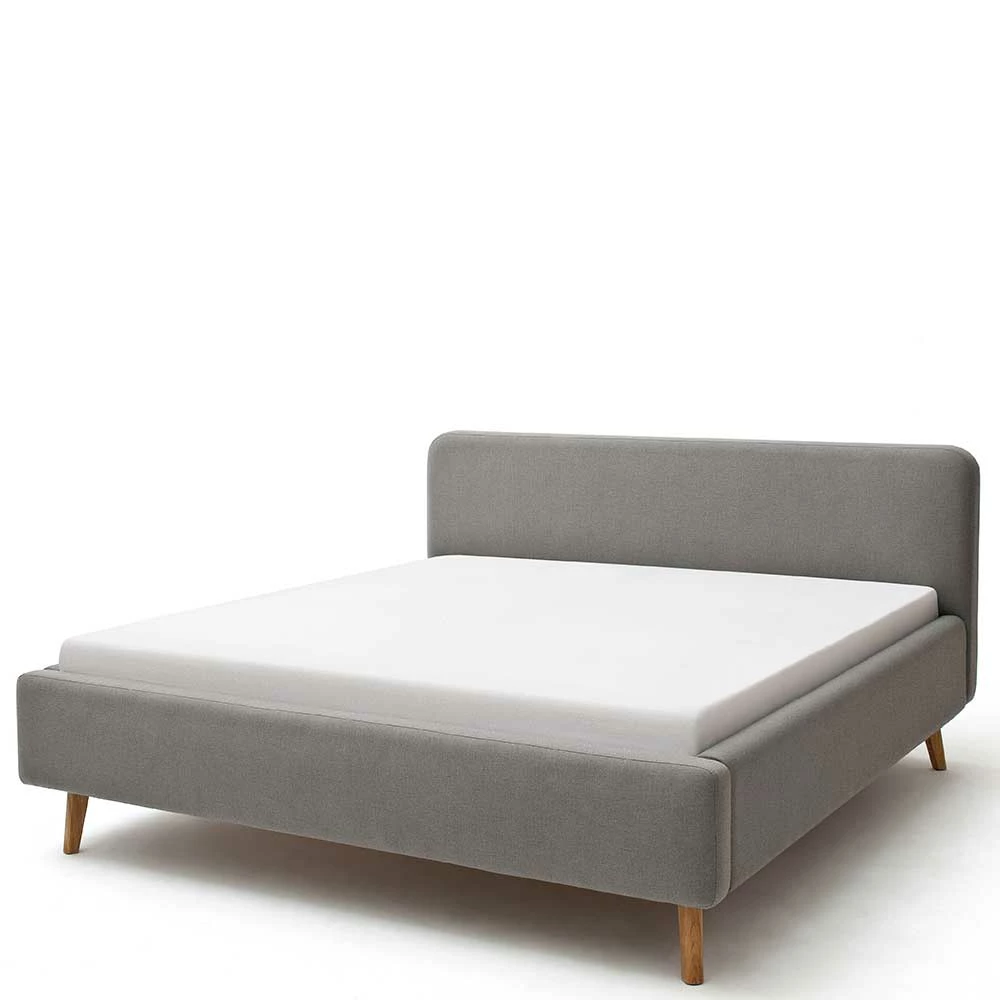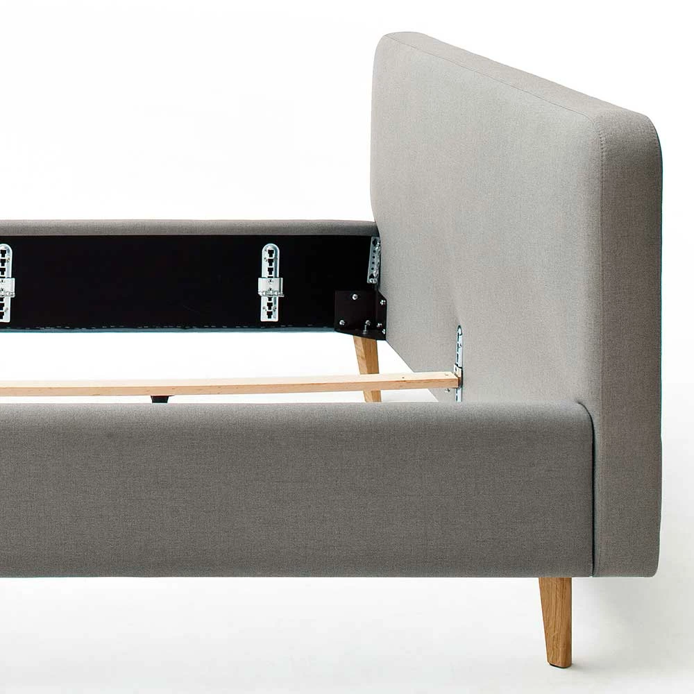 Hellgraues Stoffbett Mit Holzbeinen – Amya