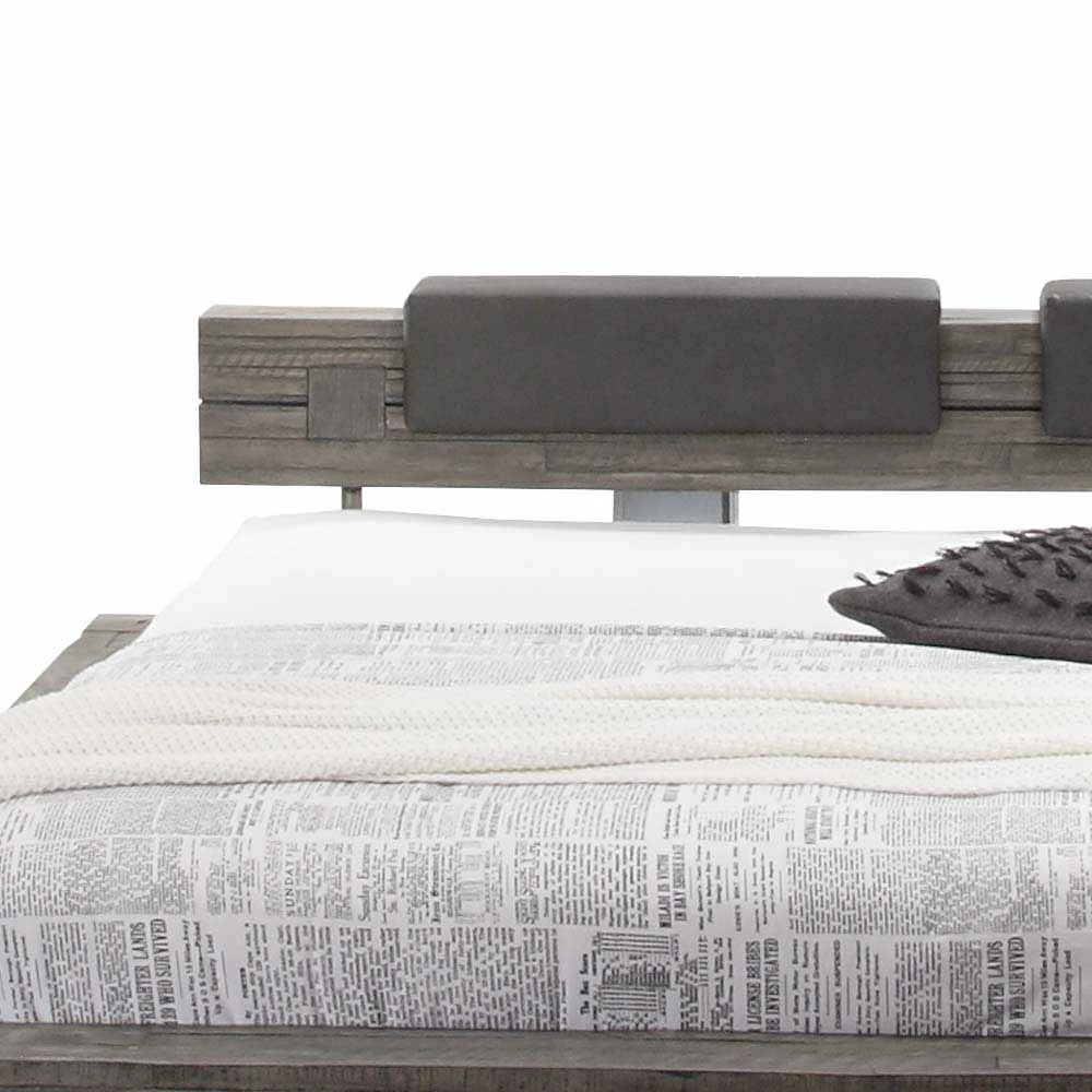 - Stylisches Massivholz-Balkenbett in Grau
