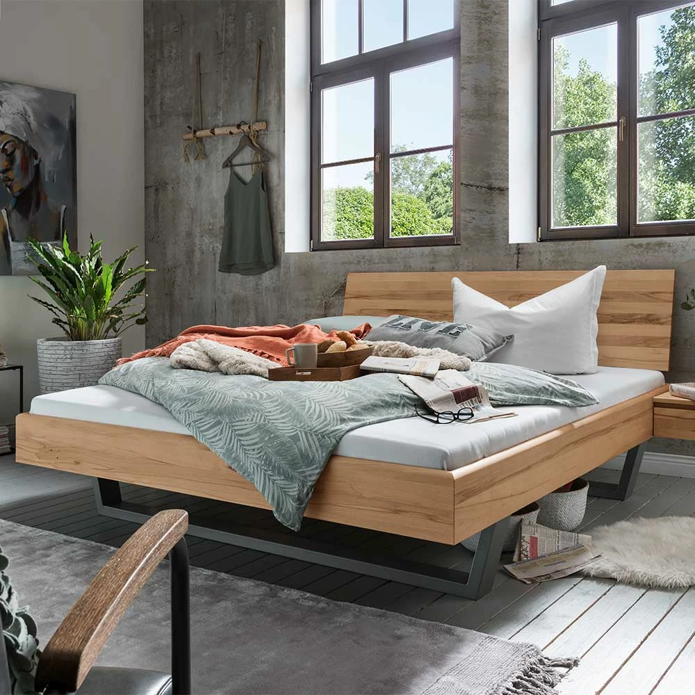 Kernbuche Bett Mit Metallkufen Gestell – Eudrinia II