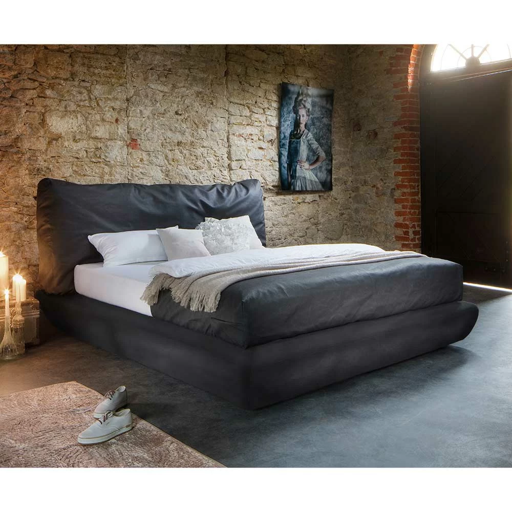 - Gepolstertes, lässiges Kopfteil in Kissenoptik mit gewollter unikater Faltenbildung, per Hand gefertigt