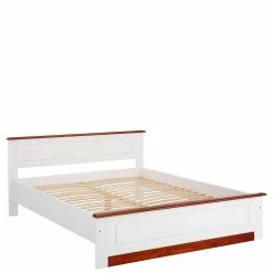 Landhaus Holzbett In Weiß & Kirschbaum – Vendirai