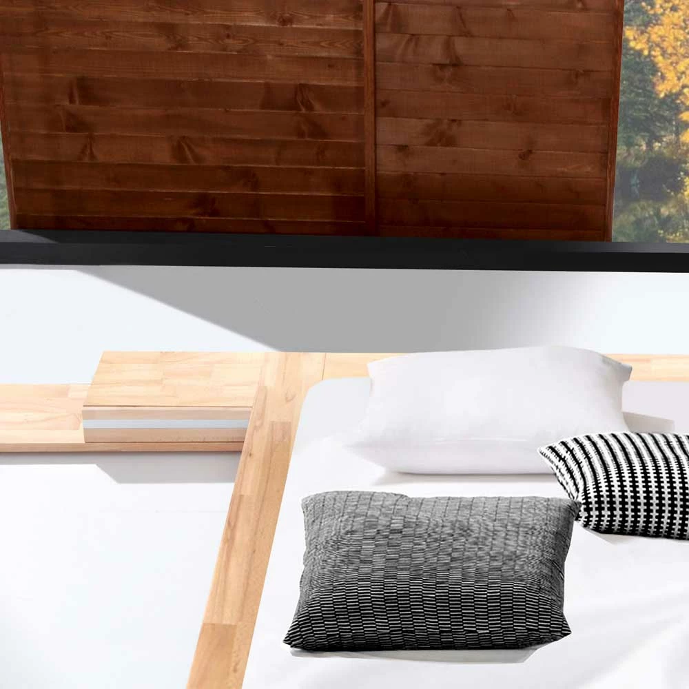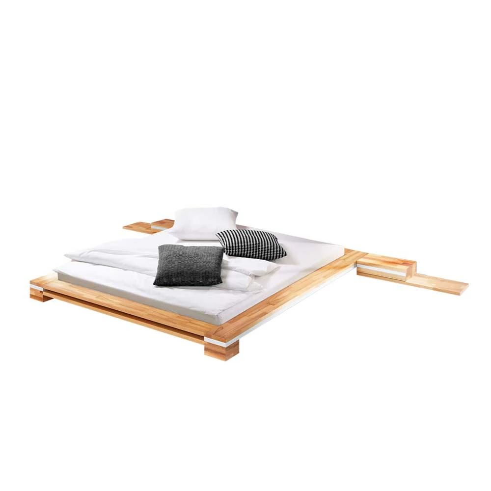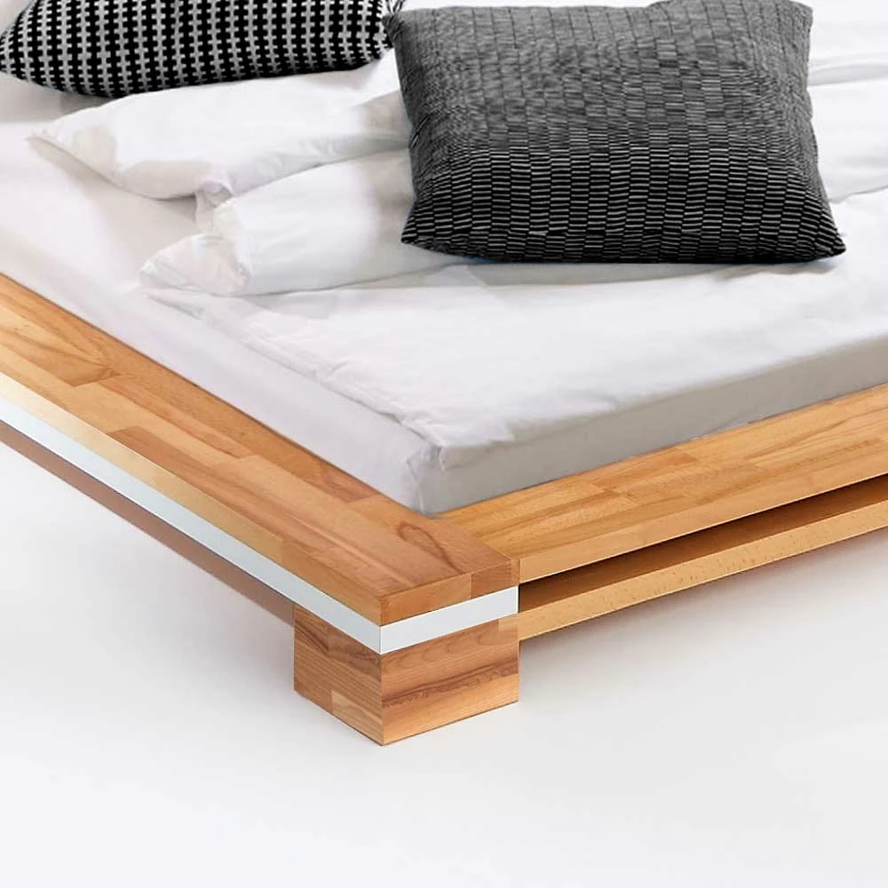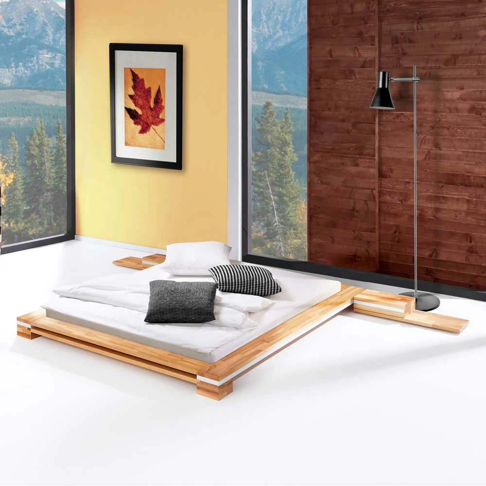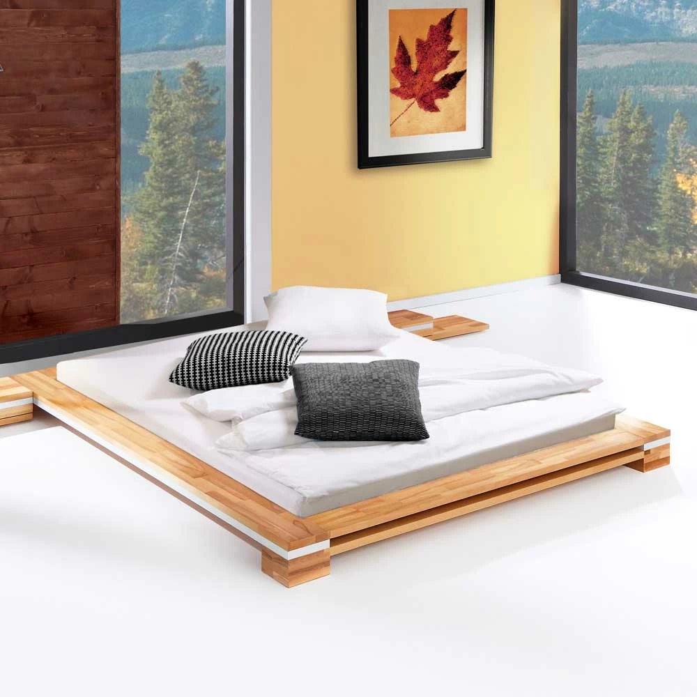 - Stilvolles, niedriges Bett in Kernbuchefarben