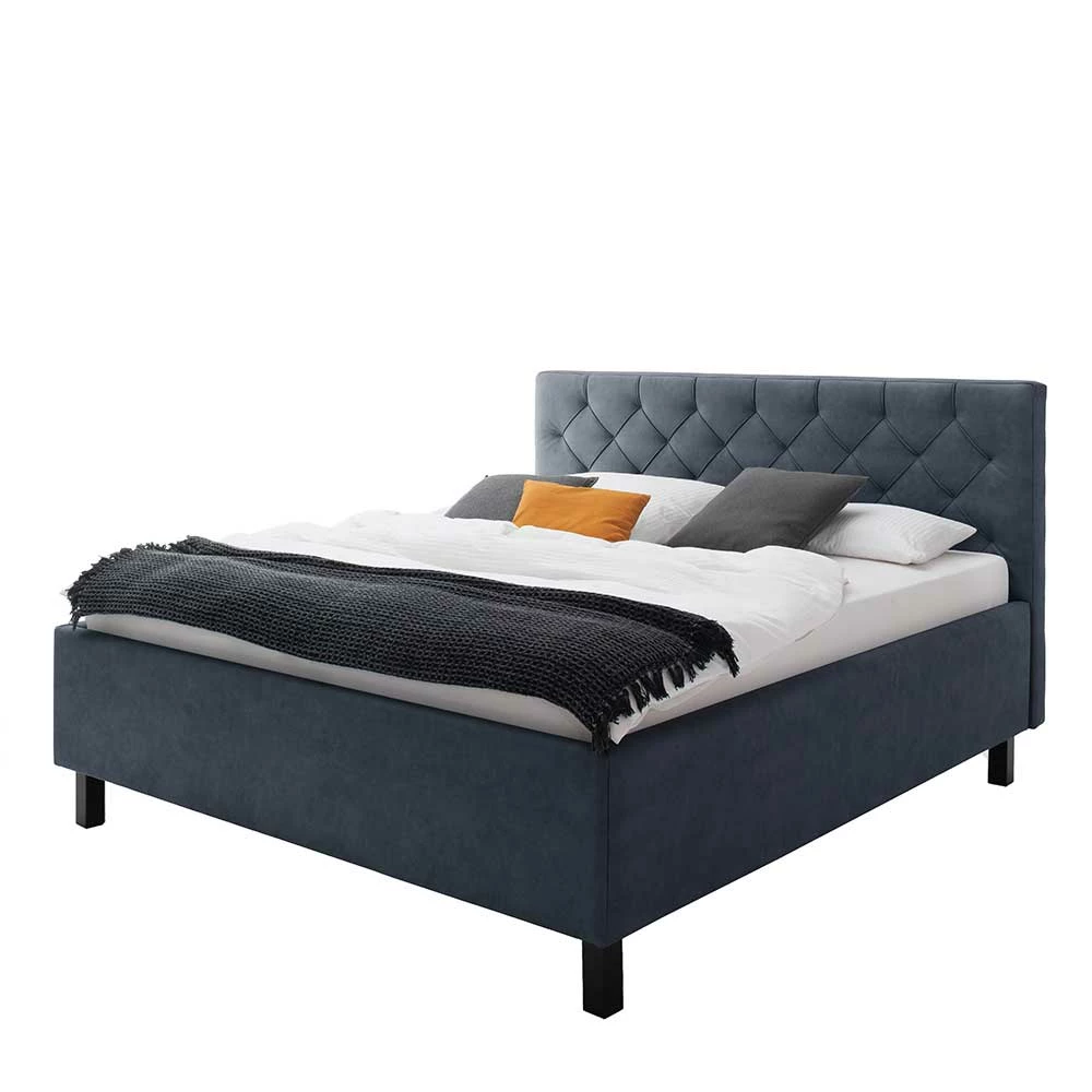 - Hochwertiges Polsterbett in Blaugrau und Schwarz