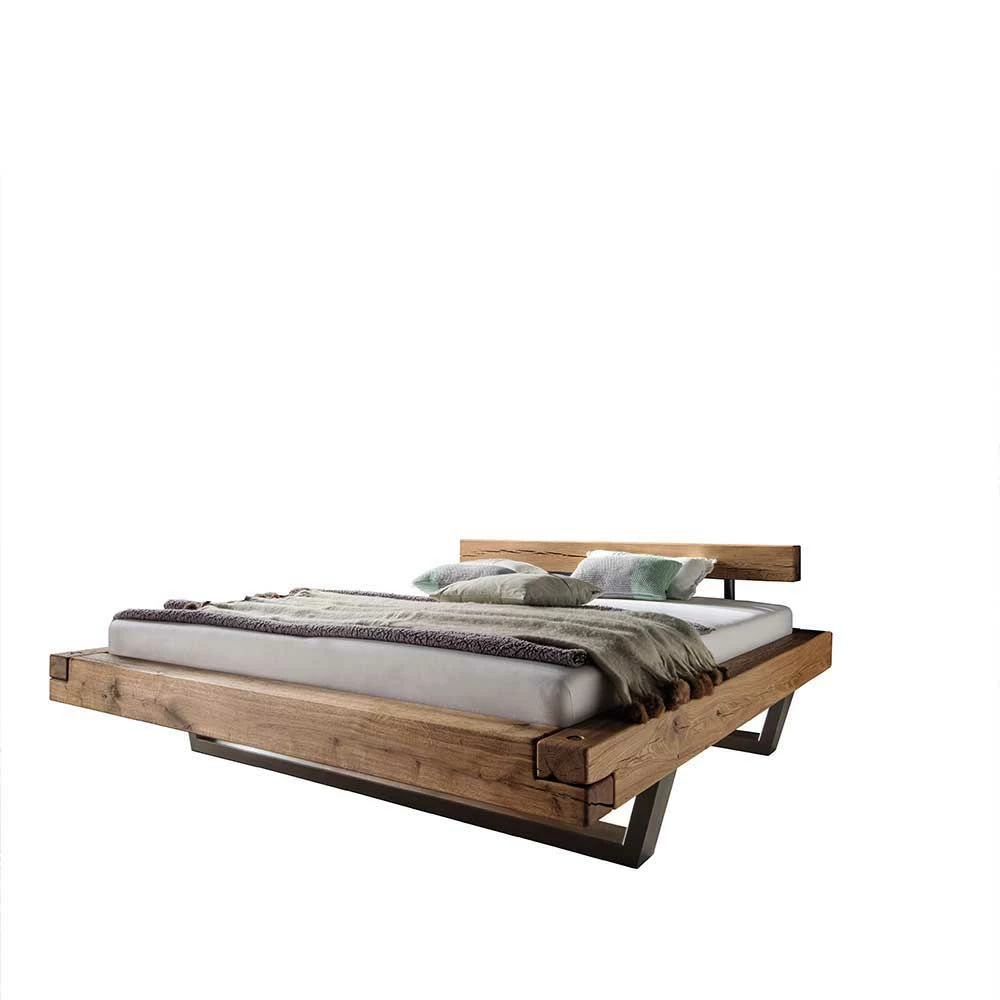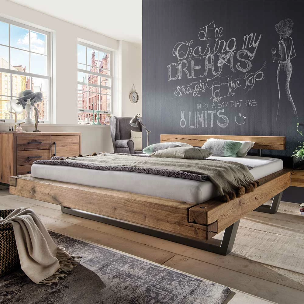 Schwebeoptik Balkenbett Aus Wildeiche Omegon Mit Industrial Kufengestell Metall