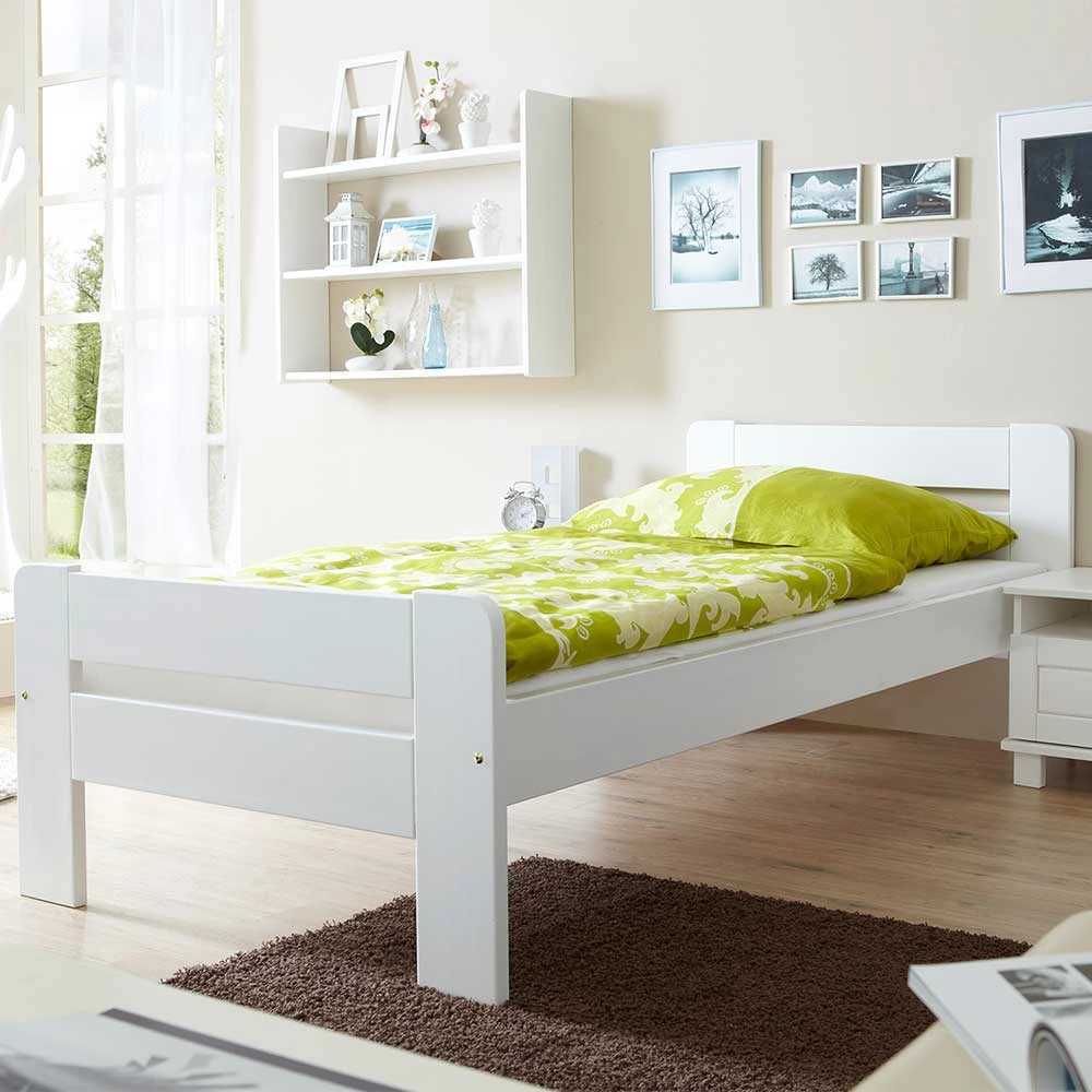 - Schlichtes Einzelbett in Weiß