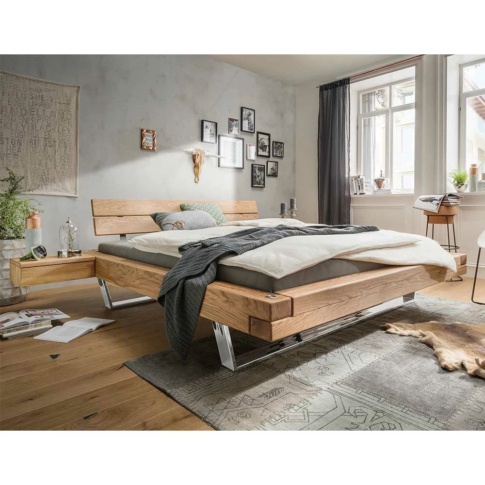 Wildeiche Balkenbett Mit Edelstahl-Kufen Dominica Inkl. 2 Nachttische (dreiteilig)