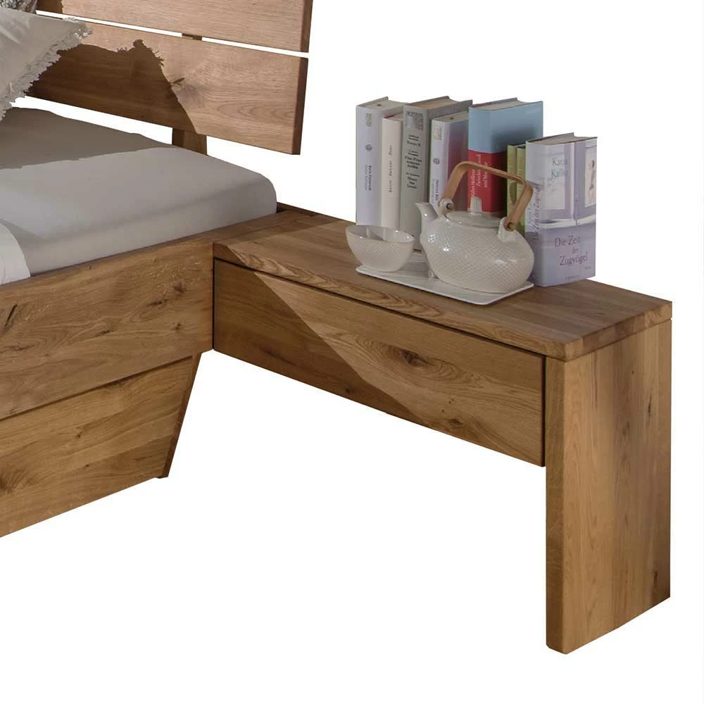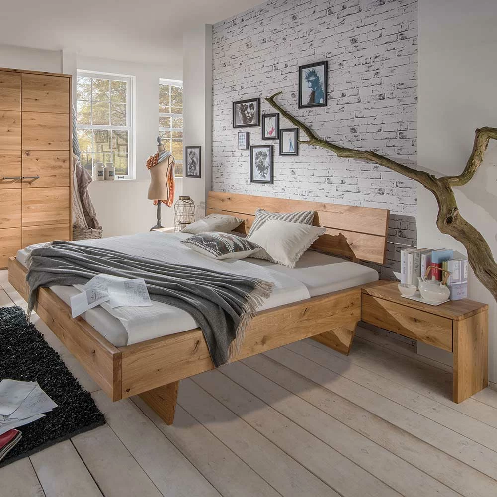 Wildeiche Bett Set Mit Doppelbett – Smiralda (dreiteilig)
